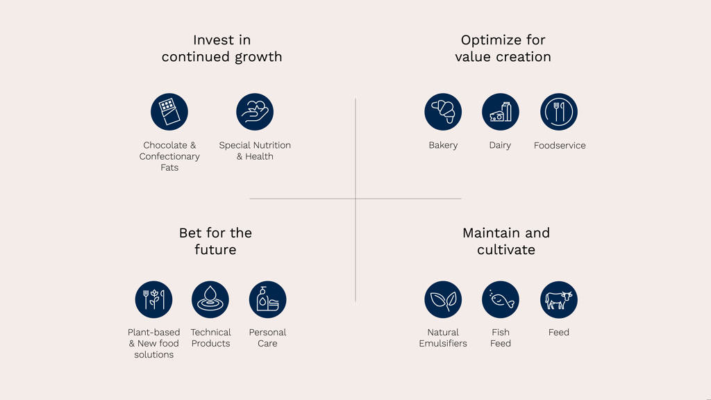 AAK’s portfolio strategy ensures focus on high-value market opportunities. We have defined four strategic roles that enable us to accelerate execution, increase profitability, and expand into new geographical markets.