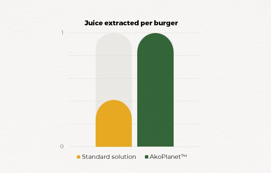 Burgers made with AkoPlanet™ aren't just tastier and juicier: our experts have also found the balance between boosting succulence whilst enabling saturated fat reduction, because everything we do is about making great tasting no-compromise plant-based food made with health in mind and with love for people, plants and the planet.