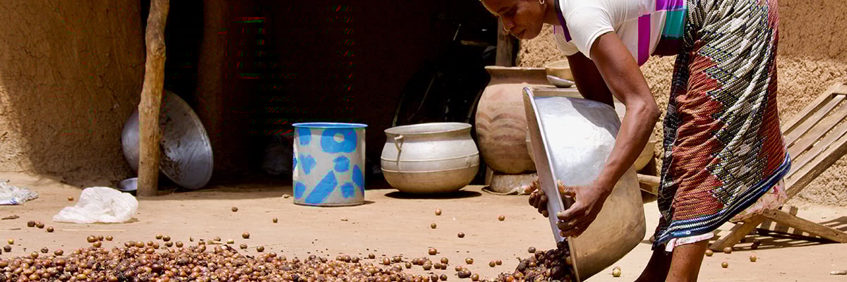 Traditionally, it is women who collect the shea fruit and process the kernels it contains. Income earned from the crop provides women with funds to alleviate poverty and hunger, to invest in children’s education and capital to support other income-generating activities.